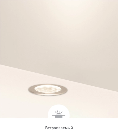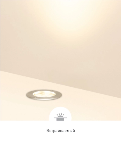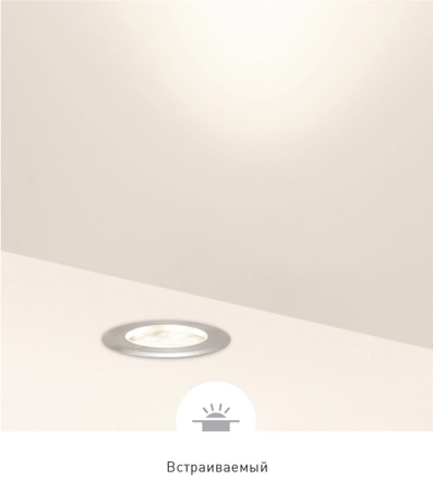 Основной корпус светильника выполнен из алюминия методом литья под давлением, а крышка — из нержавеющей стали. Это делает модель надежной и устойчивой к коррозии.