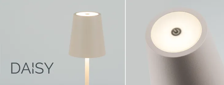 Светодиодный светильник DAISY — уютное освещение на рабочем столе или в зоне отдыха. Сенсорное управление позволяет легко регулировать яркость и цвет свечения в диапазоне 2200–3000 K, создавая комфортную атмосферу для чтения, вечернего досуга или ужина в ресторане. Степень защиты IP54 предотвращает попадание капель воды и пыли, позволяя использовать светильник как в помещениях, так и под открытым небом, например, на веранде.
