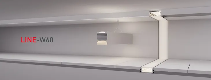 Серия профилей W60 предназначена для создания единой линии света «пол — стена — потолок». Ширина световой линии составляет 55 мм, что отлично подходит как для создания основного, так и декоративного контурного освещения.