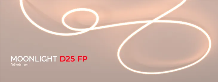 Гибкий неон MOONLIGHT с диаметром 25 мм имеет стальную пластину внутри, благодаря которой сохраняет форму изгиба без дополнительных креплений. Равномерное свечение неона направлено на 360°. С помощью MOONLIGHT D25 FP возможно создать локальное и основное освещение, а также оригинальные арт-объекты. 3D-инсталляции на основе круглого гибкого неона гармонично впишутся в гостиные, кухни, детские комнаты и коммерческие пространства.
