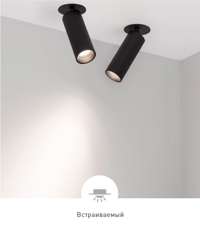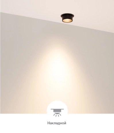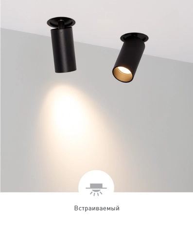 Накладной поворотно-откидной, встраиваемый поворотно-откидной, безрамочный с возможностью встройки под шпаклевку и телескопическим выдвижением светового модуля. Два цвета: черный или белый. Два цвета свечения: теплый (3000 K) или дневной белый (4000 K).