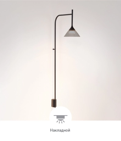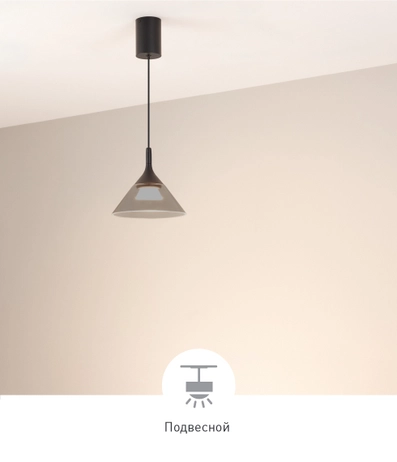 Стеклянный конусообразный плафон дымчатого цвета добавит в интерьер элегантность.