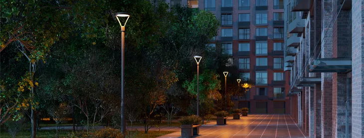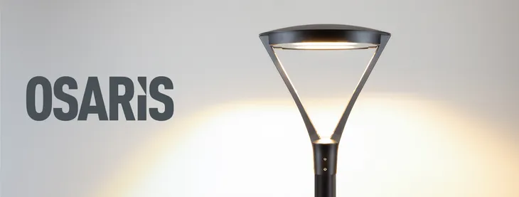 OSARIS — особый элемент ландшафтного дизайна. Теплое свечение 3000 K распределяется под углом 145×60°, наполняя пространства парков, скверов, пешеходных зон и набережных уютным светом для вечернего отдыха. Лаконичный дизайн также позволяет использовать светильники для освещения парковок и коттеджных поселков. Черный фигурный корпус изготовлен из алюминия.