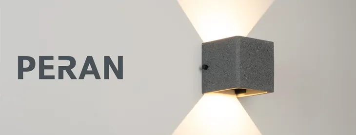 Настенный светильник создает лучи света, направленные вверх и вниз, с теплым цветом свечения (3000 K) и высокой цветопередачей (СRI>90), подчеркивая рельеф поверхности архитектурных сооружений. Кубический корпус выполнен из бетона и гармонично смотрится на фасадах зданий. Угол каждого из лучей регулируется, чтобы формировать выразительные световые акценты на поверхностях стен. Высокая степень защиты IP65 предотвращает попадание влаги и пыли внутрь светильника, что позволяет использовать его под открытым небом.