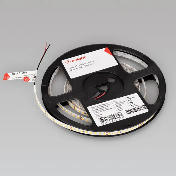 Светодиодная лента RT-A160-8mm 24V Day5000 (12 W/m, IP20, 2835, 5m) (Arlight, высок.эфф.150 лм/Вт)
