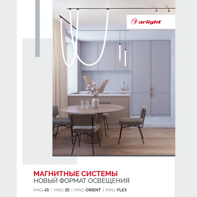 В буклете представлены магнитные системы MAG 45, MAG 25, MAG ORIENT и MAG FLEX. Показаны ассортимент светильников для этих систем, треков с различными видами монтажа (накладные, встраиваемые, подвесные), аксессуаров со схемами монтажа, включая аксессуары для монтажа в натяжной потолок.