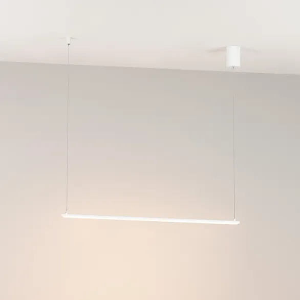 Декоративный подвесной светильник мощностью 15 Вт с теплым белым цветом свечения (3000 К). Сбалансированный минималистичный дизайн и высокая световая эффективность. Горизонтальное свечение вниз. Белый изящный корпус из металла длиной 910 мм на регулируемом тросе стильно смотрится в жилых и офисных помещениях. Регулируемая длина подвеса позволяет размещать светильники на разной высоте и подстраивать их под высоту потолков. Световой поток 531 лм и высокий индекс цветопередачи (CRI>90) для качественного освещения. Драйвер в комплекте для подключения к сети 230 В.