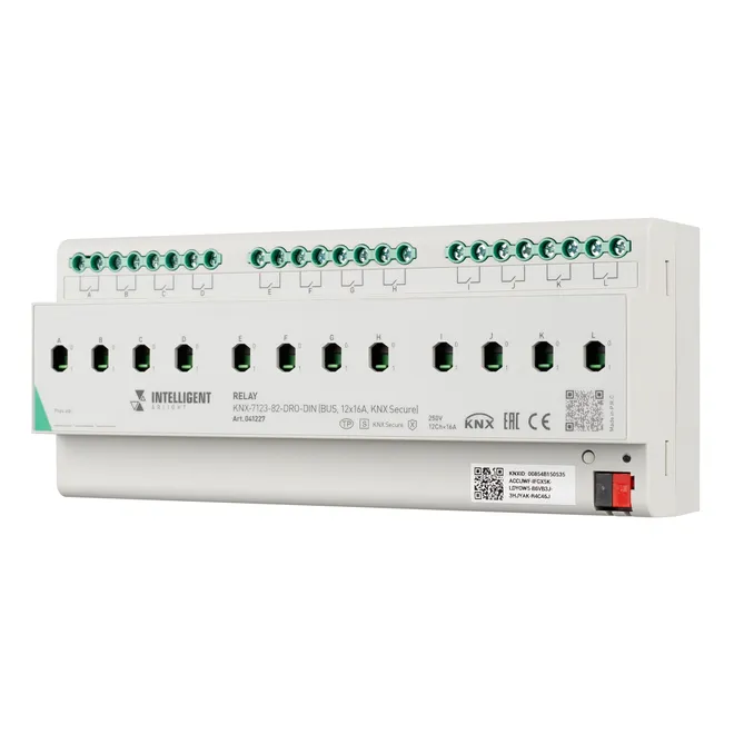 INTELLIGENT ARLIGHT Релейный модуль KNX-7123-82-DRO-DIN (BUS, 12x16A, KNX Secure) (IARL, IP20 Пластик, 2 года) 041227