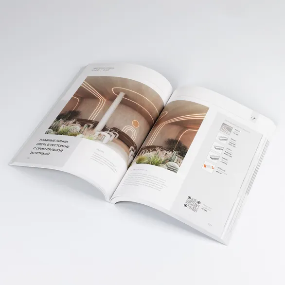 Каталог "Дизайн и свет. Альбом проектных решений" отображает применение продукции Arlight в различных интерьерах на базе выполненных проектов в различных помещениях.