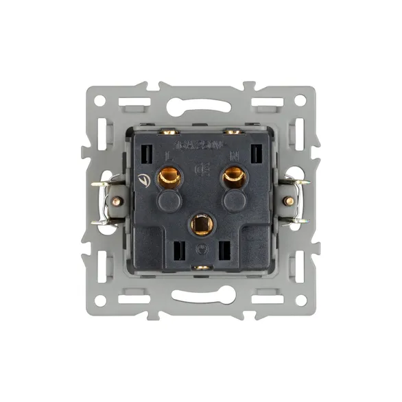 Механизм розетки с заземлением на 1 пост с влагозащитной крышкой, совместим с рамками серий VERSA/GLARE/PRESTO. Накладной тип монтажа позволяет с легкостью произвести монтаж/замену. Видимая часть механизма выполнена из высококачественного тугоплавкого пластика черного цвета. Контактная часть присоединяется при помощи винтовых зажимов, а усиленные монтажные лапки надежно фиксируют механизм в установочном подрозетнике. Степень защиты IP44 допускает использование устройства во влажных помещениях, с вероятностью прямого попадания влаги, с соблюдением требований эксплуатации.