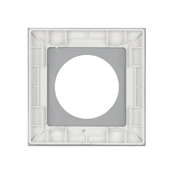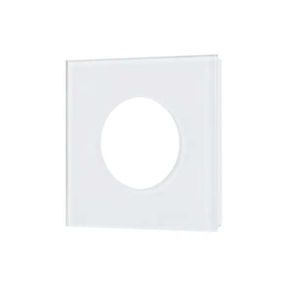 Рамка из серии GLARE изготовлена из закаленного стекла, с глянцевой поверхностью лицевой стороны рамки. Белый цвет и сплошная форма без дополнительных кантов, лаконично завершит образ многих современных дизайн проектов. Не видимая часть из тугоплавкого пластика, для надежной фиксации механизма.
