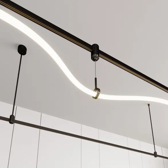Подвес гибкий HANG-TUBE с регулируемым тросом длиной 1500 мм для монтажа светильников TUBE ELASTIC к потолку или другой поверхности. Размер Ø20 х 1500 х Ø45 мм. Размер потолочного крепления: Ø20 х 35 мм, размер подвесного кольца: Ø45 х 12 мм. Не проводит электричество. Изготавливается из алюминия, окрашенного в черный цвет. Максимальная нагрузка 10 кг