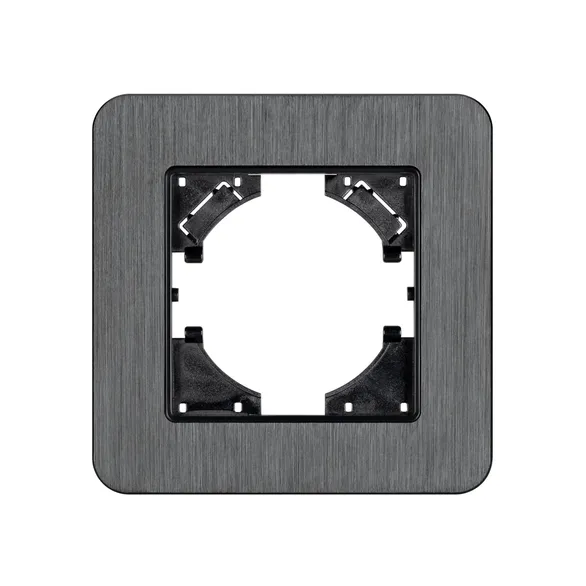 Рамка из серии AKIRY представляет собой комбинацию в виде основы из тугоплавкого пластика и 3-х миллиметровой накладки из алюминиевого сплава. Корпус выполнен в черном цвете и сатинированной поверхностью с высотой 7мм, что позволяет гармонично встроить в интерьер любого современного дизайн-проекта. Невидимая часть из тугоплавкого пластика, для надежной фиксации механизма. Грани алюминиевой накладки аккуратно обработаны и отшлифованы, чтобы обезопасить пользователя при установке и демонтаже.