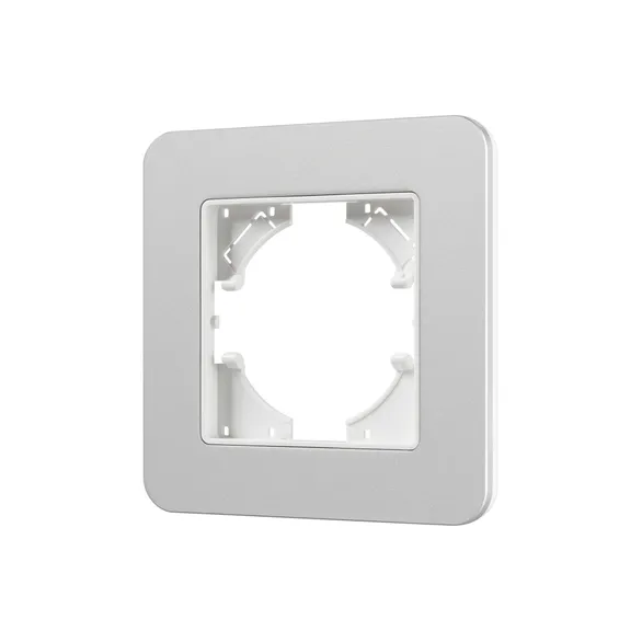 Рамка из серии AKIRY представляет собой комбинацию в виде основы из тугоплавкого пластика и 3-х миллиметровой накладки из алюминиевого сплава. Корпус выполнен в серебристом цвете и поверхностью с Soft-Touch покрытием высотой 7мм, что позволяет гармонично встроить в интерьер любого современного дизайн-проекта. Невидимая часть из тугоплавкого пластика, для надежной фиксации механизма. Грани алюминиевой накладки аккуратно обработаны и отшлифованы, чтобы обезопасить пользователя при установке и демонтаже.