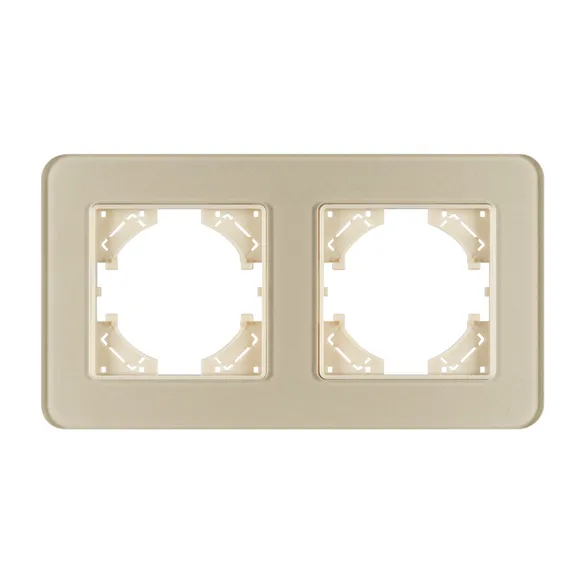 Рамка из серии OMALI изготовлена из закаленного стекла высокой прочности. Корпус выполнен в золотом цвете и поверхностью с Soft-Touch покрытием высотой 7мм, что позволяет гармонично встроить в интерьер любого современного дизайн-проекта. Невидимая часть из тугоплавкого пластика, для надежной фиксации механизма. Предназначена под встраиваемые механизмы.