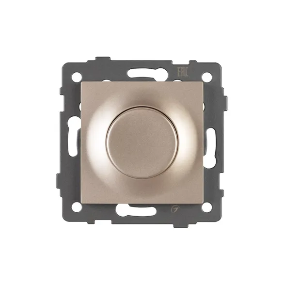 Механизм регулировки света совместим с рамками серий OMALI/AKYRI/PERIO/XSILO. Механизм позволяет регулировать степень интенсивности свечения, а так же включать/выключать подключенное освещение. Скрытый тип монтажа позволяет гармонично встроить в интерьер любого современного дизайн-проекта. Видимая часть механизма выполнена из высококачественного пластика золотого цвета. Контактная часть присоединяется при помощи винтовых зажимов, а усиленные распорные лапки надежно фиксируют механизм в установочном подрозетнике.