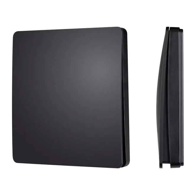 Накладная кнопочная панель черного цвета, изготовленная из пластика. Предназначена для управления одноцветными источниками света с помощью кнопок. Основные выполняемые функции: включение и выключение света, регулировка яркости. Удобное и точное управление с помощью эргономичных кнопок. Изделие применяется в качестве пульта дистанционного управления диммерами и релейными модулями серий TUYA-***-WF и TY-***-WF, поддерживающими управление по радиоканалу 433MHz. Не требует питания, имеет встроенный кинетический источник питания. Габариты панели 86х86х16.5 мм, корпус выполнен из пластика. Устройство устанавливается на любую поверхность, к которой возможно прикрутить монтажную базу панели.