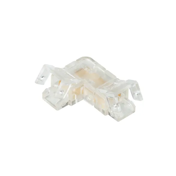 Угловой коннектор для соединения (STS - Лента-Лента) 2-х отрезков открытых светодиодных одноцветных лент (2216, 2835, COB) шириной 5 мм без ощутимого разрыва. Материал - прозрачный пластик. Обеспечивает соединение без видимых разрывов. Максимальный допустимый ток 3 А, максимальное напряжение 24 В, степень защиты IP20. Цена за 1шт, 10шт/пакет.