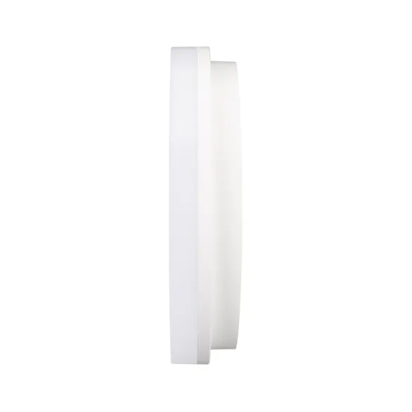 Накладной светильник BOUWER-MOTION мощностью 17/21 Вт (переключаемая), белым теплым/дневным цветом свечения 3000К/4000К (переключатель на корпусе), световым потоком 2210-2830 лм и углом свечения 110 градусов. Круглый корпус Ф300x65 мм, IP54, IK10, CRI>80. Встроенный микроволновый датчик движения. Дальность срабатывания 9, 5м; время отключения и чувствительность датчика регулируется.