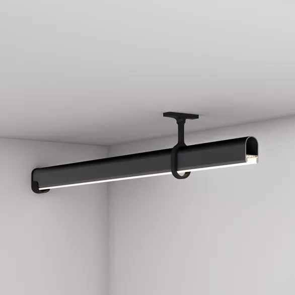 Накладной профиль-штанга из анодированного алюминия черного цвета для подсветки мебели и гардеробных. Максимальная нагрузка - 12,5 кг/м.