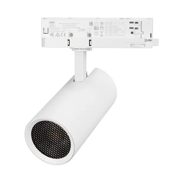 Одинарный трековый светильник GERA мощностью 20 Вт с дневным цветом свечения (4000 К) и индексом цветопередачи CRI>90 для создания локального направленного освещения в квартирах, офисах, музеях, магазинах и др. помещениях. Светильник с узким углом рассеивания 15 градусов и световым потоком 2000 лм обеспечивает качественное освещение и высокую световую отдачу, оснащен решеткой HONEYCOMB в комплекте. Стильный лаконичный корпус из алюминия окрашен в белый цвет высококачественной порошковой краской. Корпус светильника поворачивается вокруг своей оси, что позволяет быстро менять направление светового луча. Светильник легко устанавливается в трехфазный трек серии LGD и подключается к сети переменного тока 230 В с помощью встроенного драйвера. Дополнительные аксессуары приобретаются отдельно.