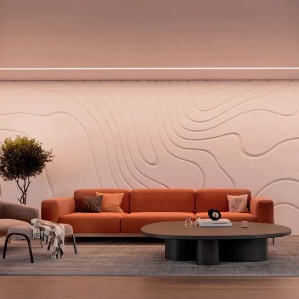 Встраиваемый алюминиевый профиль черного цвета (центральная линия) для дизайнерских решений «линии света» в натяжных потолках. Решение 2-в-1: служит каркасом для крепления натяжного потолка и профилем для установки светодиодной ленты. Подходит для тканевых и ПВХ потолков.