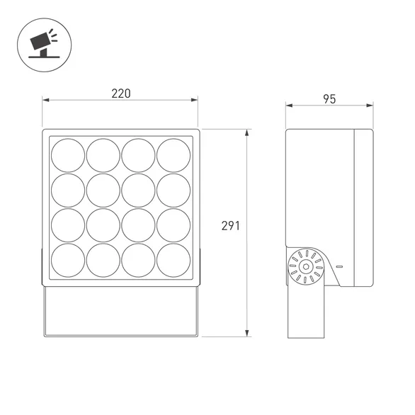 Светильник ALT-BLOCK-S220x220-50W Day4000 (GR, 60 deg, 230V) (Arlight, IP66 Металл, 3 года) 055261