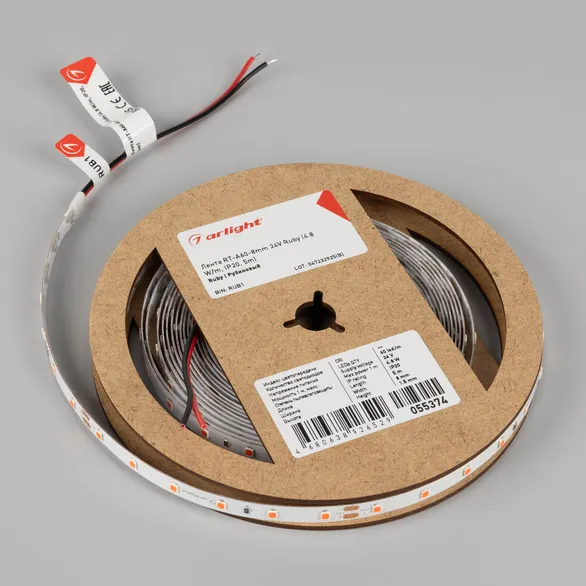Универсальная светодиодная лента RT серии A60 шириной 8 мм, мощностью 4.8 Вт/м. Напряжение питания 24 В. Светодиоды SMD 2835 (60 шт/м) рубинового цвета свечения. Минимальный отрезок 100 мм (6 светодиодов). Универсальное применение для организации цветной декоративной подсветки любых жилых и коммерческих помещений, подсветки интерьеров, потолочных ниш, лестниц, ступеней, полок, натяжных потолков, витражей. Создание световой рекламы: подсветка лайтбоксов, вывесок, букв, витрин. Рекомендуется установка на профиль.
