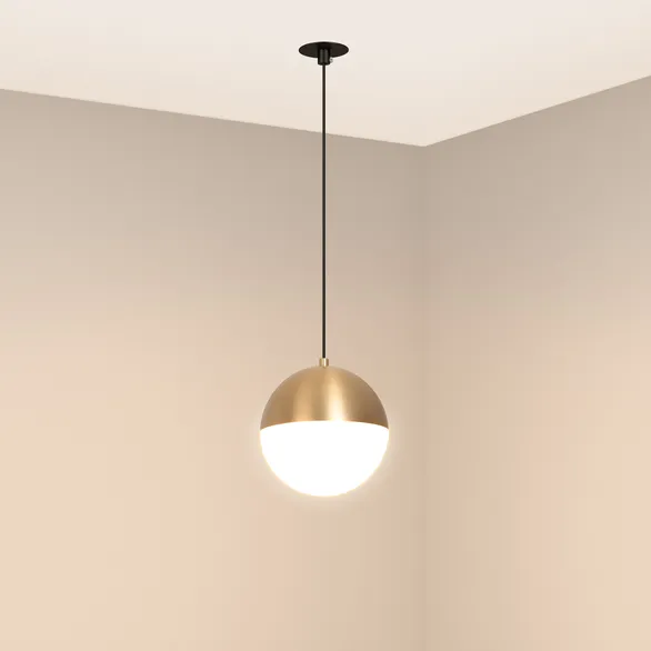 Элегантный встраиваемый подвесной светильник мощностью 11 Вт с дневным белым цветом свечения (3000 К). Потолочная чаша встраиваемая, черного цвета. Матовый плафон диаметром 150 мм с широким углом излучения 170° создает приятное рассеянное свечение и особую теплую атмосферу в любых интерьерах. Золотой корпус на регулируемом подвесе длиной 1500 мм. Высокий индекс цветопередачи (CRI>90) и световой поток 960 лм для качественного декоративного освещения. Минимальный коэффициент пульсации (менее 1%) гарантирует зрительный комфорт.