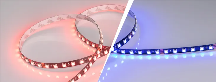 Мультицветные ленты, серия B84. Тип светодиодов 5060 (B), 84 светодиода на 1 метр. Мультицветная подсветка ниш, декора. Световые линии с изменяемым цветом свечения.