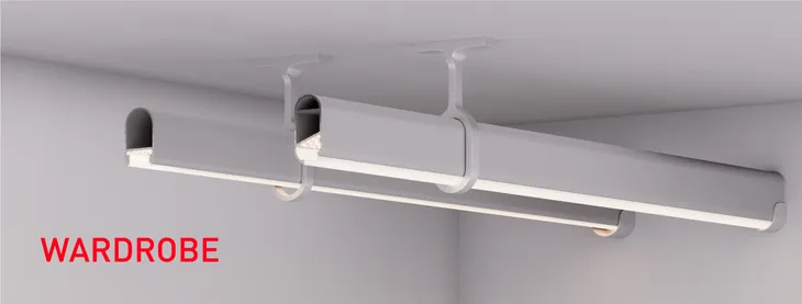 Профиль-штанга WARDROBE поможет решить сразу две задачи. С ним легко организовать освещение в шкафу или гардеробной. Кроме того, его можно использовать для компактного хранения одежды.