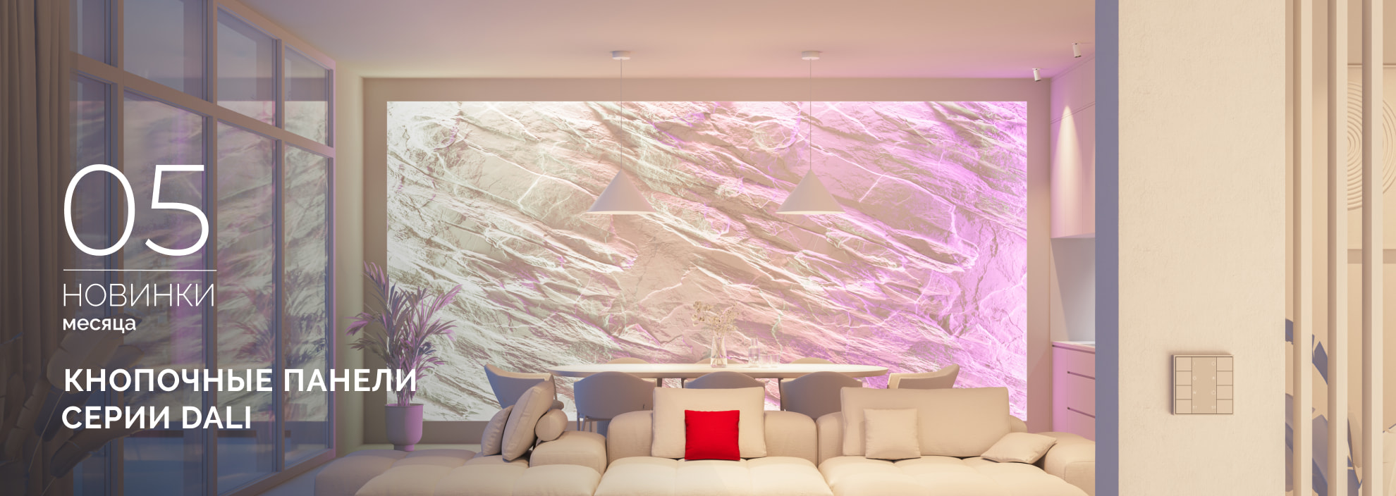 Новые панели управления DALI в элегантном дизайне выходят за рамки обычных выключателей, предлагая полноценное управление освещением с разными световыми сценариями.