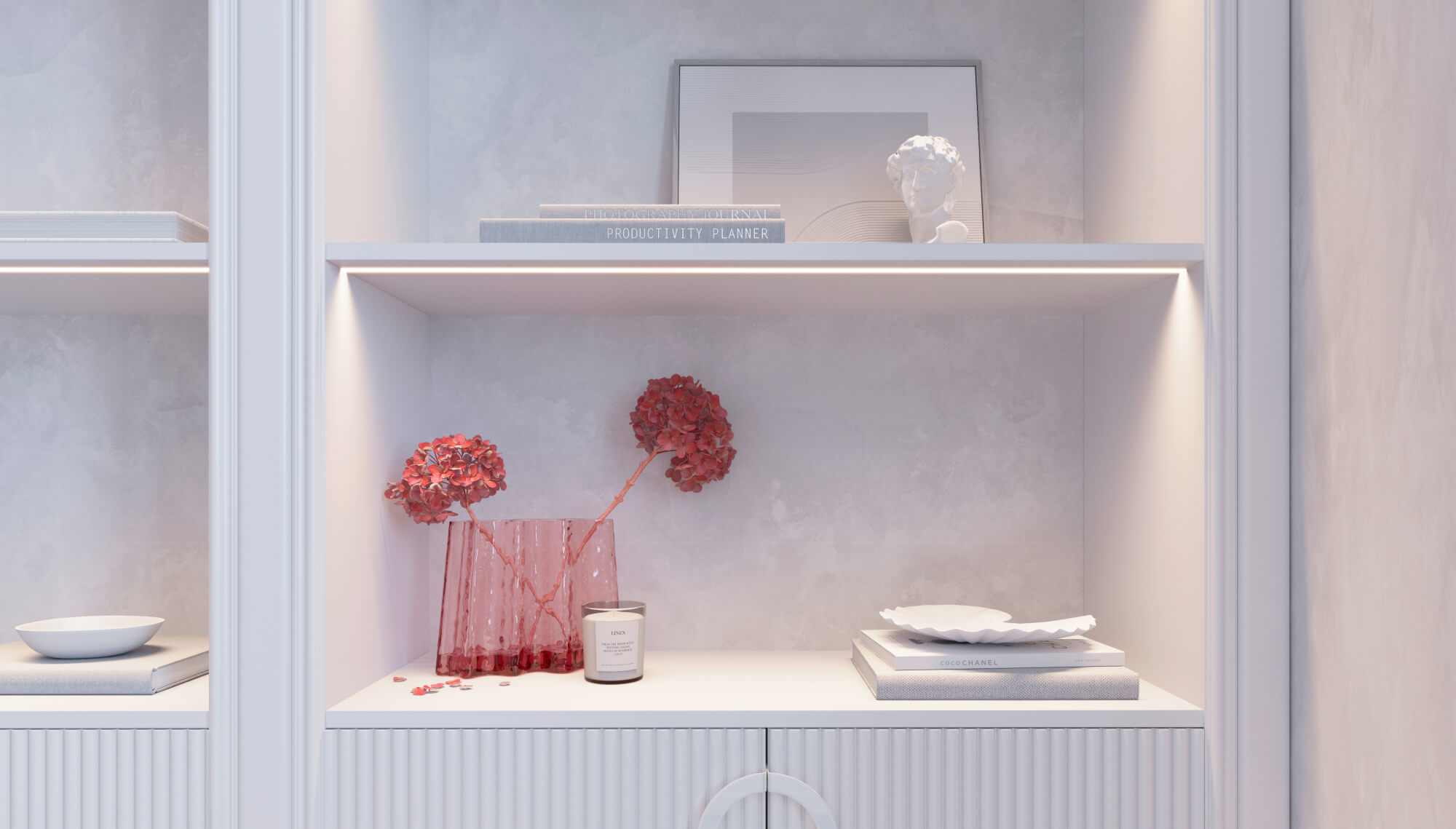 Линия свечения высотой 2.3 мм очень компактна и аккуратна, что позволяет использовать ленту для подсветки ниш от 4 мм, а также стеклянных витрин, полок и ступеней.