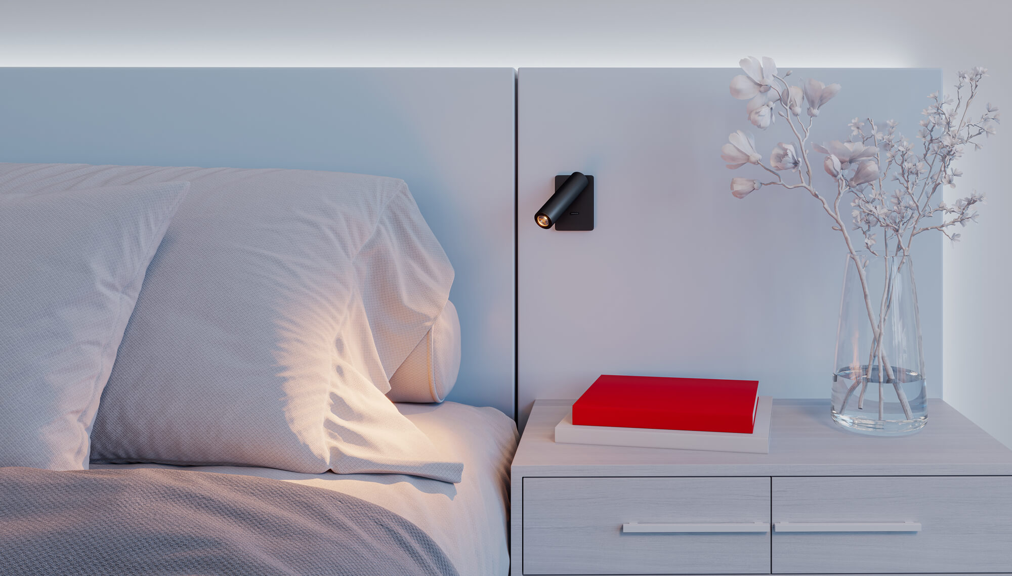 Легко установите светильник в стену, в изголовье кровати или мягкую стеновую панель, используя накладное монтажное основание. Встроенный драйвер обеспечит безопасность и удобство подключения к сети АС 230 В. А вращение корпуса на 350° вокруг своей оси делает освещение максимально комфортным и функциональным.