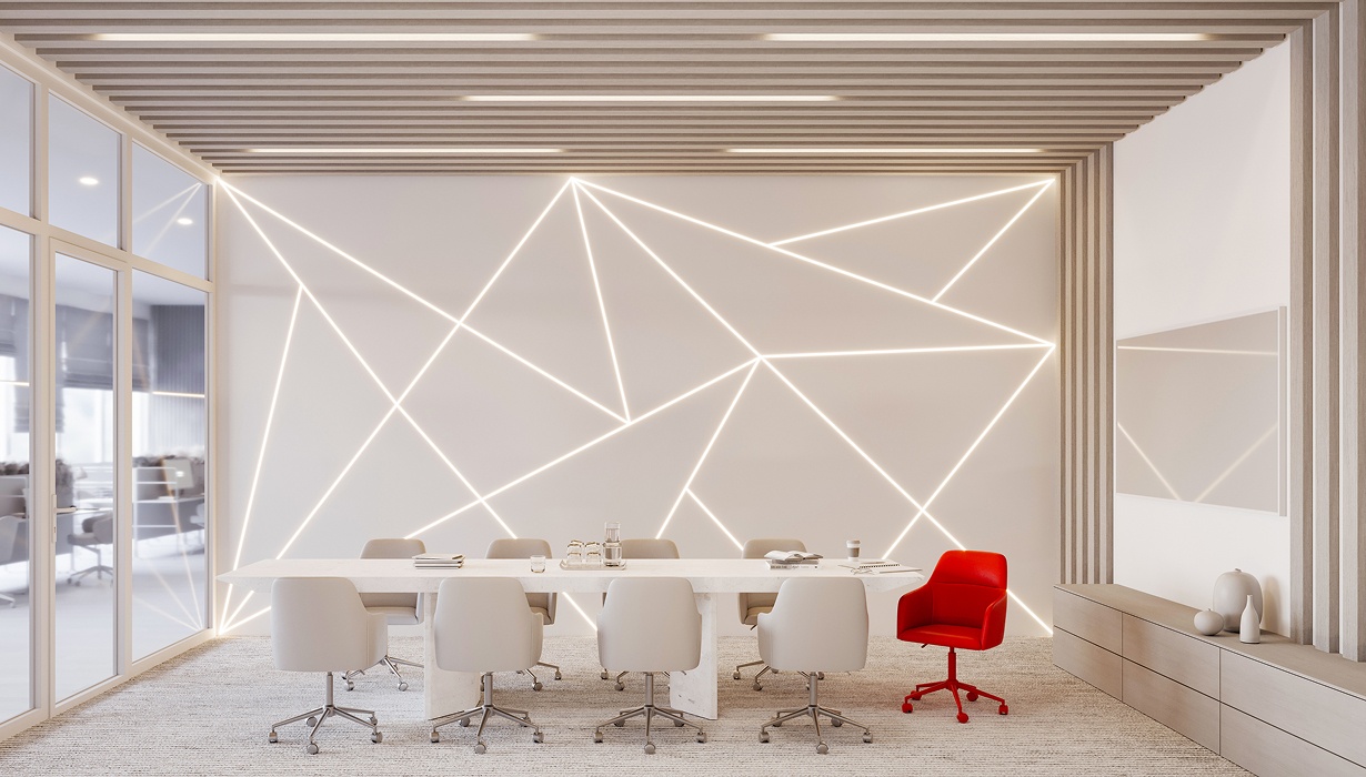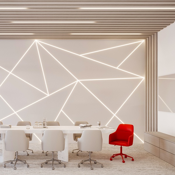 Лента универсальна: ее можно использовать для декоративной подсветки ниш и витрин, а также для выделения геометрии стен и потолков в общественных пространствах. Это отличный выбор не только для квартир, домов или офисов, но и для школ, административных зданий.
