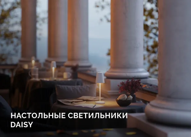 Где бы вы ни задумали создать атмосферу — за рабочим столом, в кафе или на открытой веранде — переносной светильник DAISY не просто лампа, а надежный друг, создающий комфорт в любых условиях.