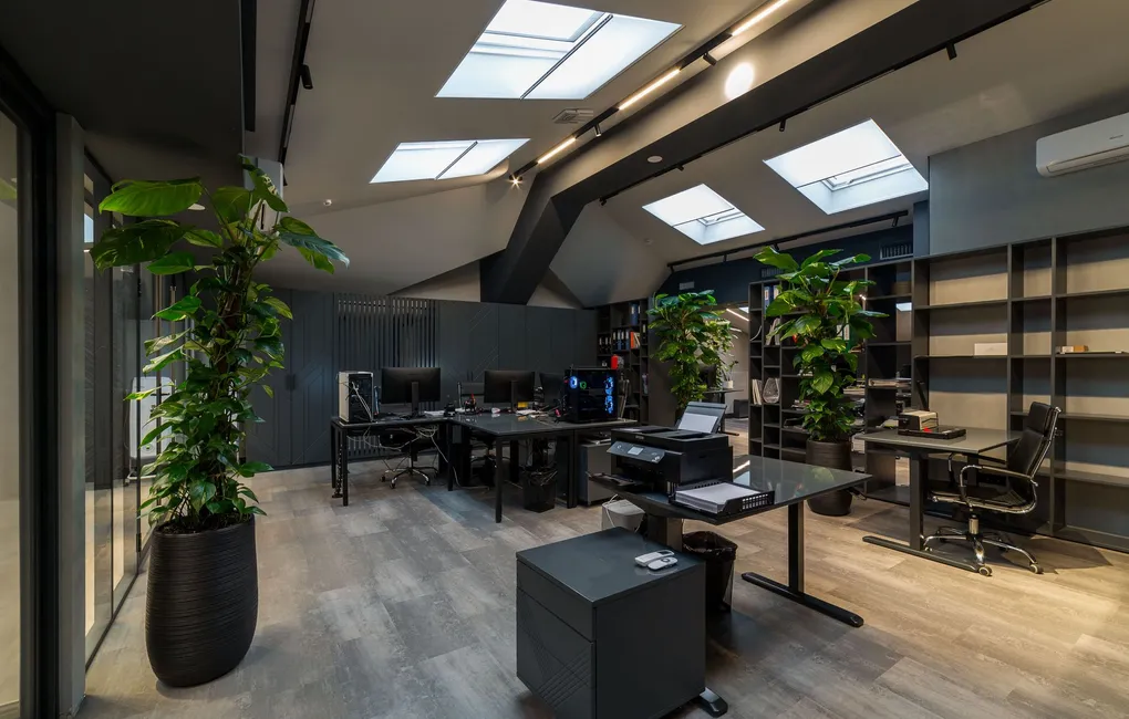 Результат: Комбинация встроенных, накладных и трековых решений позволила реализовать запрос заказчика. Благодаря интеграции современных технологий освещение стало не только энергоэффективным и надежным, но и подчеркнуло архитектурный стиль и статус компании, объединяющей проектирование, строительство и производство.