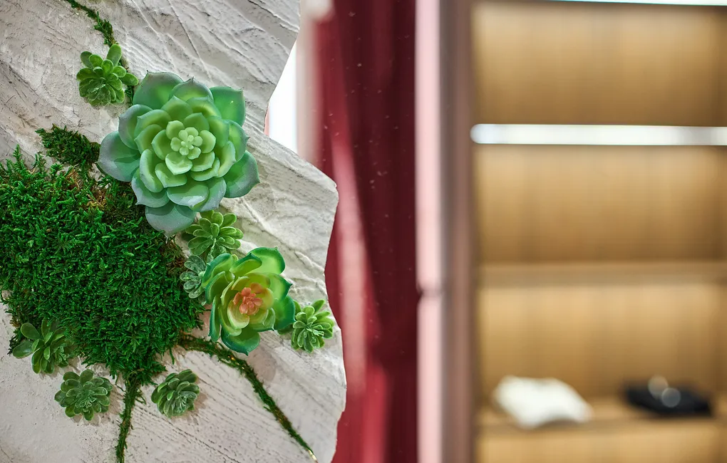 Водные мотивы: в зоне ожидания магазина находится фактурная стена, внутри которой утоплено зеркало, обрамленное светодиодной узкой лентой сплошного свечения COB серии X420. Отбрасываемые ею блики создают иллюзию ряби на поверхности воды.