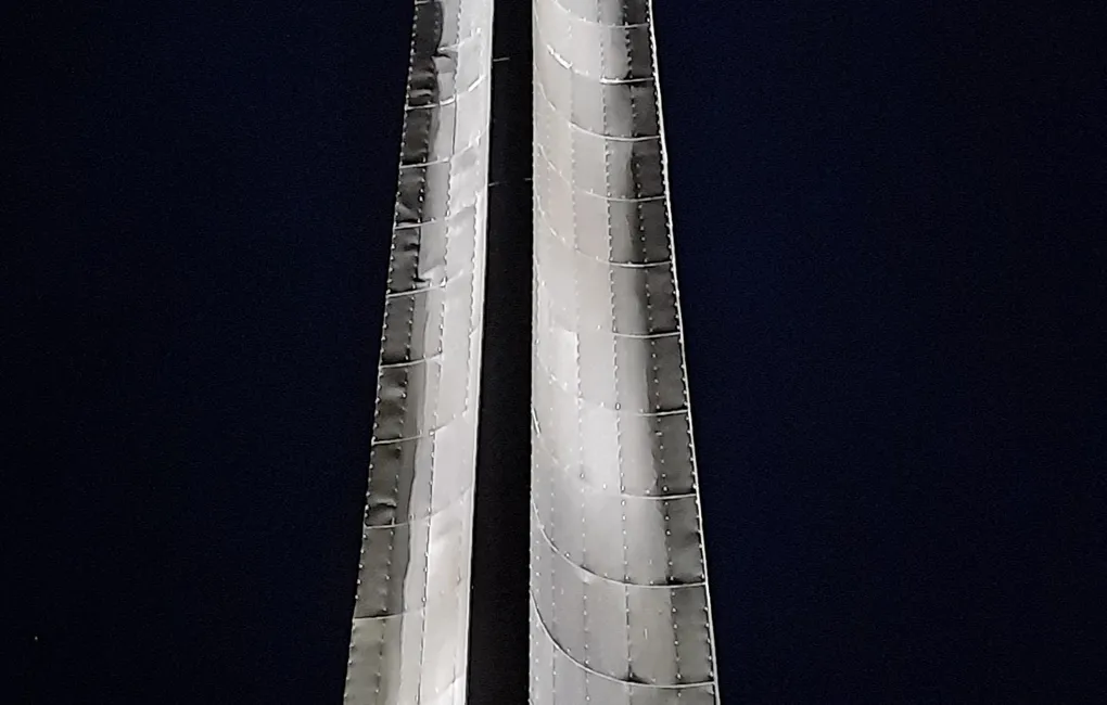 С задачей блестяще справились. Предварительно были проведены мероприятия по исследованию отражающих свойств материала обшивки штыка — листового титана. Затем произведен светотехнический расчет, в результате которого стали известны необходимые технические характеристики прожекторов, их количество и система нацеливания. Выполнена настройка осветительного оборудования.
