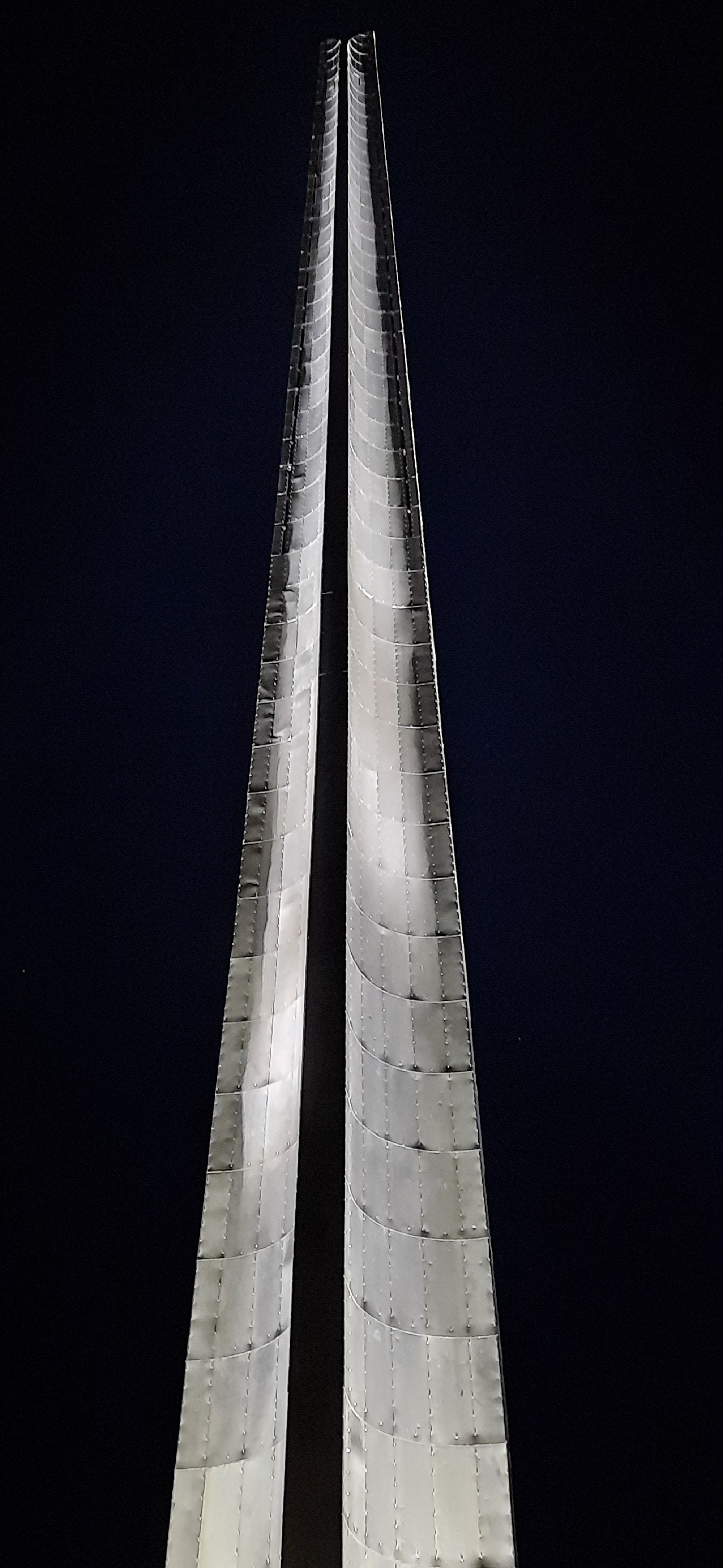 В этот раз перед инженерами стояла сложная светотехническая задача — создать равномерное заливающее освещение монумента по всей его высоте.
