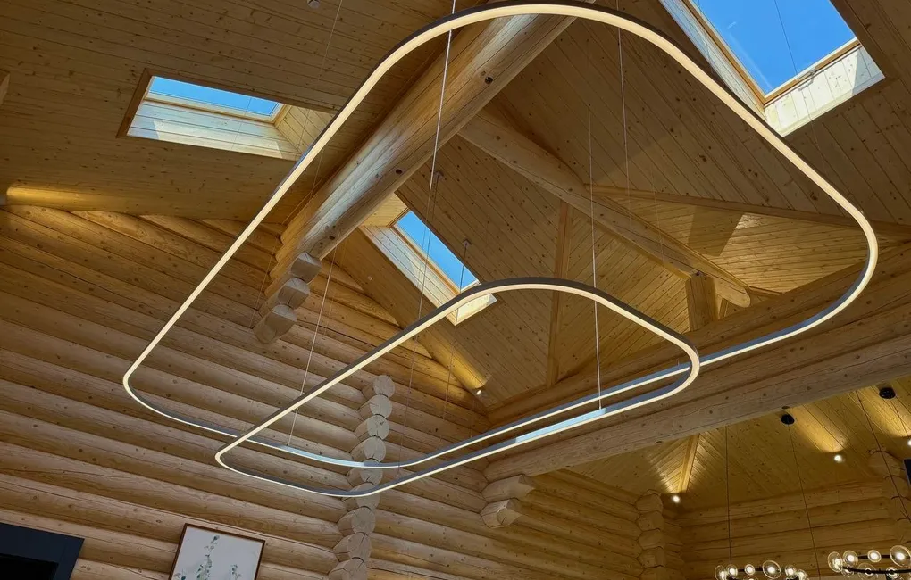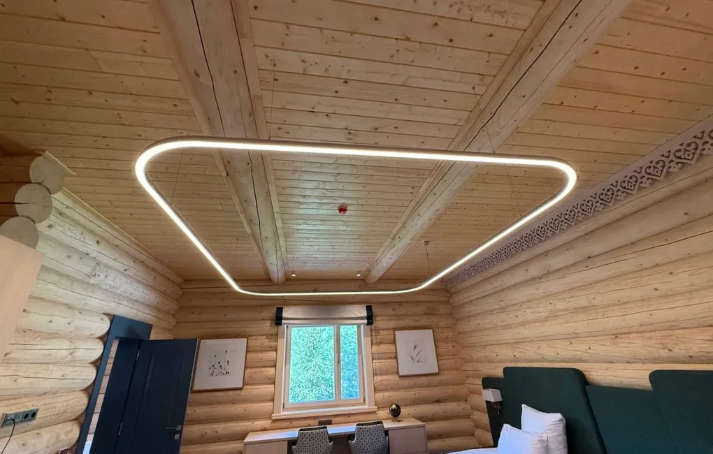 Реализация: в проект вошли алюминиевые профили серий SL-SLIM и SL-ARC, а также универсальные светодиодные ленты линеек A120 и A180 теплого белого свечения (3000 К).