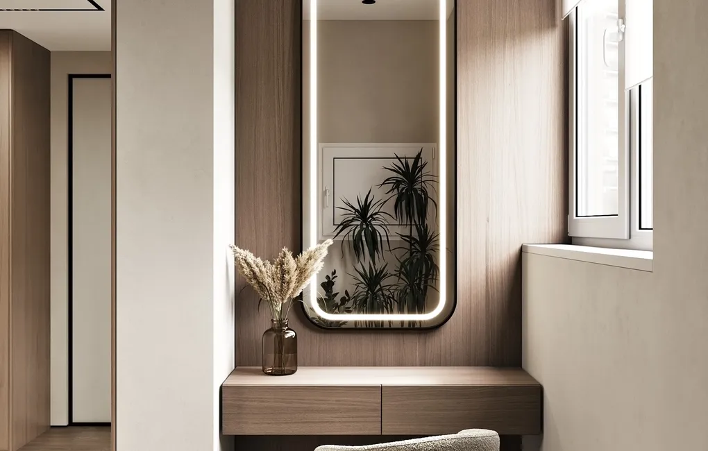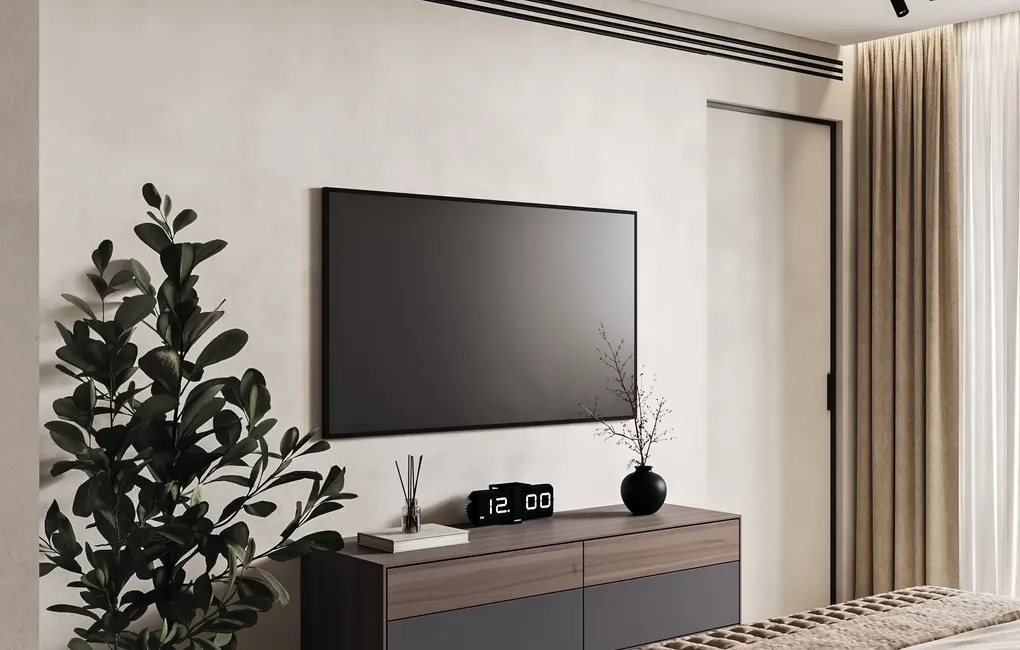 • в гостиной — встроенный камин с эффектом пламени и функцией увлажнения воздуха.