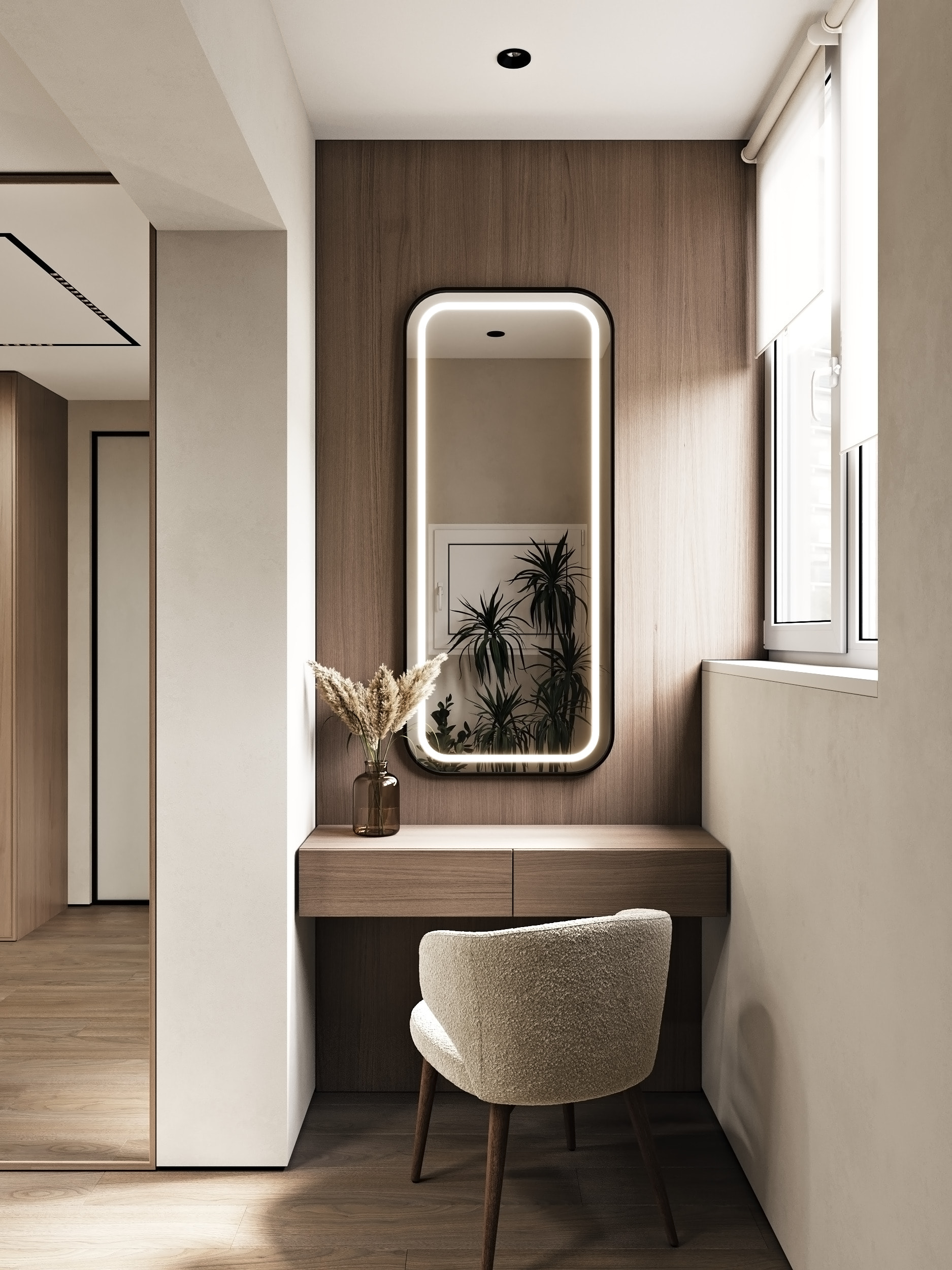 • выполнена перепланировка с формированием мастер-спальни, детской, гардеробной, рабочей зоны, зоны отдыха;