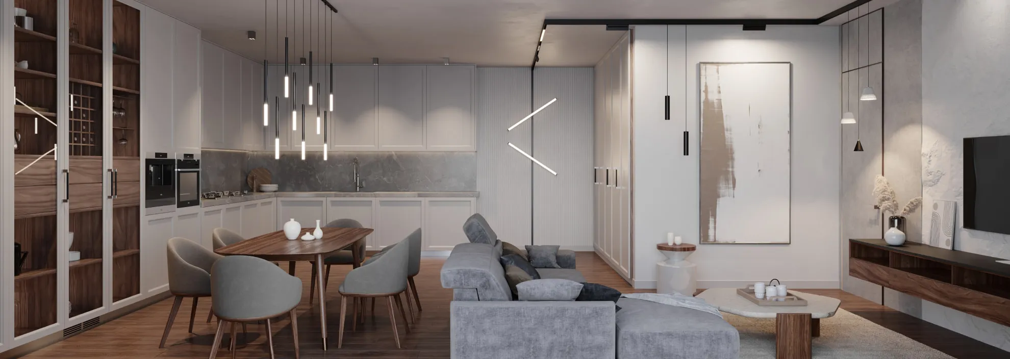 зонирование без перегородок. Грамотно спланированное освещение позволит разделить пространство на отдельные локации без стен и дверей.