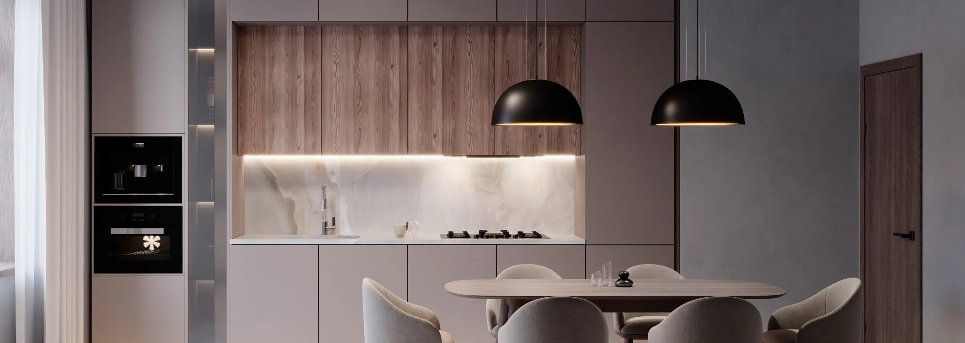 Такой гибкий подход способствует динамичному зонированию, когда одна трековая система может одновременно освещать, скажем, обеденную зону (при направлении на стол одного прожектора), кухонный фартук (второй прожектор) и акцентную полку (третий прожектор).
