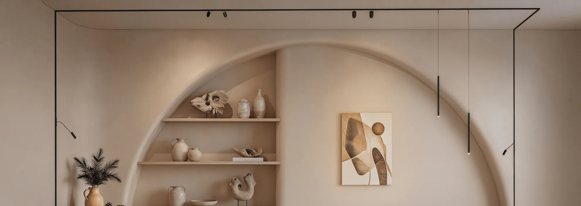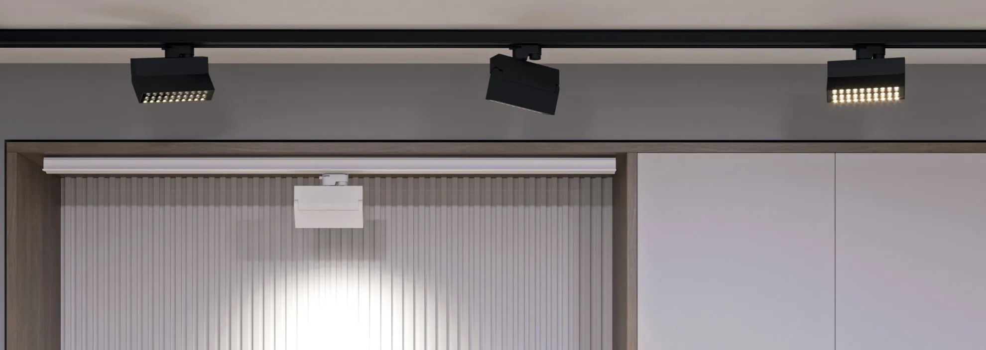 треки, которые крепятся к шинопроводу, позволяющему передвигать светильники и менять направление света. Благодаря трековому освещению можно точечно выделять предметы и расставлять световые акценты на текстурах;