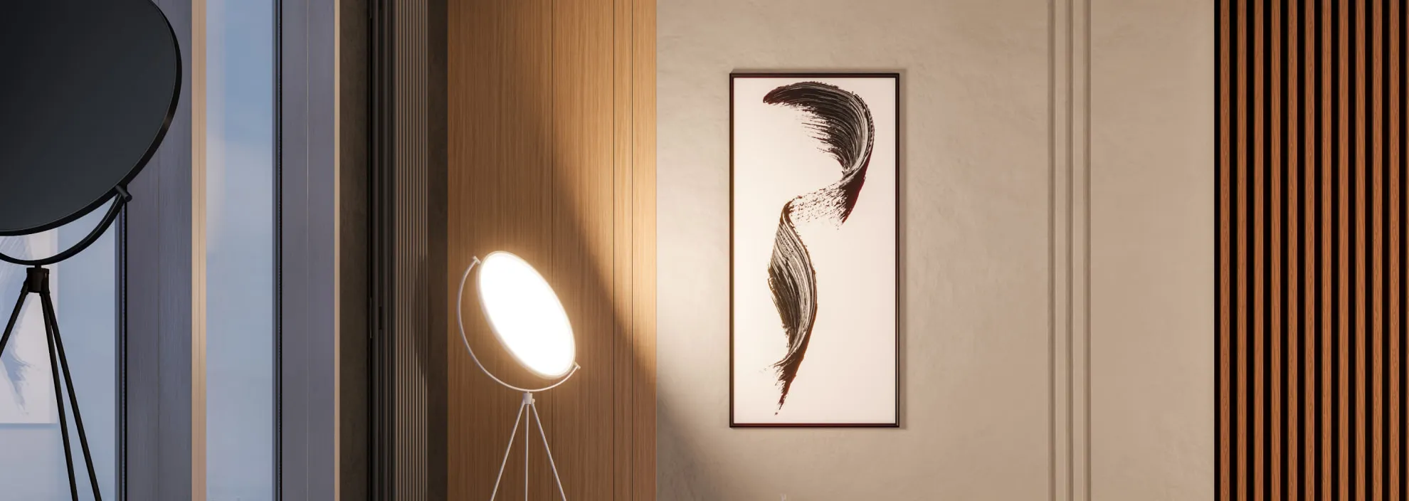 правило третей и расстояния от стены. Чтобы осветить стену с картиной или фактурной отделкой, важно не только подобрать угол, но и определить точку монтажа светильника. Как это сделать? Разместить устройство на расстоянии примерно 1/3 от длины стены, тогда акцент будет выглядеть естественно;